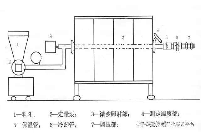 高粘度液体食物的管式微波高温灭菌设备如下图